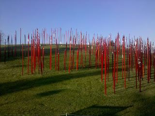 Until September, the gardens will feature various pieces by Dale Chihuly. For those who aren't super artsy (like myself), Dale Chihuly is one of the world's premier glass workers. The things he can do are absolutely mind-boggling. I was blown away by the pieces he'd presented to the gardens. They will be there until September and while I know you all miss my pithiness and wit, I think the best course of action is simply to post the pictures I took to show you what I was lucky enough to experience. I had one of those moments (that have become ever so frequent) of feeling so lucky to be on a project like this. My response this time last year would've been "oh, well, thanks for the suggestion, but Grand Rapids is so far away". And really, it wasn't a bad drive at all.